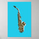 Design avec illustration de saxophone sur arrière - plan rouge; design élégant simple d'instrument de musique jazz