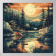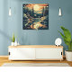 Cette affiche montre la beauté paisible d'une retraite en montagne dans un style rétro d'inspiration scandinave. L'établissement dispose d'un cabine confortable au bord du lac, entouré de pins majestueux et de montagnes ondulées sous un soleil éclatant et couchant. Grâce à une esthétique moderne et épurée du milieu du siècle, les couleurs riches et terreuses de l'oeuvre et ses formes simplifiées évoquent un sentiment de tranquillité tranquille et un lien profond avec la nature. C'est l'endroit idéal pour tous ceux qui aiment l'extérieur, le design vintage, et le sentiment serein d'une escapade paisible.