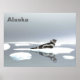 Un tableau numérique d'un phoque à ruban brun et blanc posé sur une banquise de glace, par un jour très gris et triste. Le texte "Alaska" apparaît également. Le phoque à ruban (Histriophoca fasciata) est un pinnipé de taille moyenne de la vraie famille de phoques (Phocidae). Ils sont parmi les plus frappants et facilement reconnaissables. Ils peuvent être identifiés par les bandes de couleur claire ou les "rubans" qui entourent leur cou, chaque nageoire avant et les hanches. Le contraste est particulièrement fort avec les mâles, ayant un pelage brun foncé à noir avec des rubans blancs, les femelles vont du gris argenté au brun foncé avec des rubans plus fins. Les petits de phoques rubans nouveau-nés ont de la fourrure natale blanche. Après avoir mué leur fourrure natale, leur couleur change de gris-bleu sur le dos et d'argenté en dessous; après quelques années certaines portions deviennent plus foncées et d'autres plus brillantes, et seulement à l'âge de quatre ans fait le modèle typique. Les phoques à ruban muent leur pelage chaque année, à partir de mai et jusqu'à la fin en juillet, et les jeunes individus muent le plus tôt possible. Le sceau à ruban est muni d'un grand sac gonflable qui est relié à la trachée et qui s'étend sur le côté droit au-dessus des côtes. Il peut fonctionner comme un dispositif de flottabilité, pour le stockage d'air pendant la plongée, ou pour la "phonation". Il est plus grand chez les mâles que chez les femelles. Le phoque à ruban peut atteindre environ 5,2 pi de long et peser jusqu'à 209 lb chez les deux sexes. Les phoques à ruban alternent leurs palmes avant et balancent leur arrière pour traverser la glace, plutôt que d'utiliser le mouvement de la chenille habituellement utilisé par la plupart des phoques. Les phoques à ruban sont aussi physiologiquement et anatomiquement adaptés pour effectuer des plongées plus profondes (jusqu'à environ 1950 pieds (600 m)) et nager plus vite que les autres phoques. Ils ont une poche d'air que le phoque à ruban est une espèce saisonnière liée à la glace que l'on trouve dans les régions arctiques et subarctiques du Pacifique Nord, notamment dans la mer et la mer de Béring d'Okhotsk, et dans les parties adjacentes de l'océan Arctique, y compris la mer de Chukchi, la mer de Sibérie orientale et la mer de Beaufort occidentale. Ces phoques sont relativement solitaires, passent la plupart de leur temps dans l'océan ouvert et forment des agrégations libres dans la banquise au printemps pour donner naissance, allaiter les petits et muter. Ils sont très rarement vus sur la glace ou sur la terre. Cette espèce semble préférer les floes de glace modérément épaisses et "propres" que l'on trouve dans la zone intérieure du front de glace. De la fin mars au début mai, les phoques à ruban de la mer de Béring vont des îles Pribilof au golfe d'Anadyr, plus ou moins le long du plateau continental, étant plus abondants sur le front de glace du nord-ouest. Au fur et à mesure que la glace recule de mai à la mi-juillet, les phoques se déplacent plus au nord, où ils s'élancent sur la lisière de la glace et sur la glace résiduelle, parfois en groupes denses. Après la fonte de la glace, la plupart des phoques à ruban migrent probablement avec la glace de mer qui s'éloigne à travers le Bering Straight dans la mer des Chukchi ou restent pélagiques dans la mer de Béring pendant le reste de l'année. Jusqu'à présent, il n'y a eu que deux cas reconnus où des phoques à ruban ont été trouvés jusqu'à Seattle, dans l'État de Washington, et même plus au sud à Morro Bay, en Californie. Rien n'indique que la maladie soit la cause de l'apparition des phoques dans les deux endroits, car les deux semblent en bonne santé. Les mères de phoques à ruban donnent naissance à leurs petits très loin au large de la banquise durant le mois d'avril jusqu'au début du mois de mai. Les petits doublent leur poids pendant les soins infirmiers et sont sevrés au bout de trois à quatre semaines. L’accouplement survient probablement peu après le sevrage, bien que peu de connaissances soient faites sur le système de reproduction. On sait que les phoques à ruban mangent une variété de poissons, de céphalopodes et de crustacés; cependant, l'information sur leurs habitudes alimentaires est limitée et surtout limitée au printemps, lorsque les phoques à ruban se nourrissent généralement moins, comme en témoignent leur poids et leur épaisseur réduites. Bien qu'il y ait peu de preuves directes de prédation, les prédateurs potentiels des phoques à ruban comprennent les ours polaires, les épaulards, les requins et les morses. Les joints à ruban sont relativement peu prudents lorsqu'ils sont sortis et peuvent être approchés de près par bateau. Ce comportement suggère que les phoques à ruban ne subissent probablement pas beaucoup de prédation par les ours polaires, mais qu'ils peuvent aussi les rendre particulièrement vulnérables à la chasse par l'homme. Les autochtones de Sibérie et de l'Alaska chassent le phoque du ruban pendant de nombreuses générations pour leur subsistance, et la prise annuelle actuelle par les autochtones de l'Alaska est estimée à moins de 200 phoques par année. Les chasseurs soviétiques ont effectué des récoltes commerciales de phoques à ruban dans les années 1960 et 1980, période au cours de laquelle la population de la mer de Béring est passée de 80 000 à 90 000 animaux à 60 000. Les enquêtes menées au début et au milieu des années 1970 ont permis d'estimer la population mondiale de phoques à ruban entre 200 000 et 240 000, les estimations se situant entre 60 000 et 100 000 dans la mer de Béring. Une estimation plus récente et fiable de l'abondance n'est pas disponible actuellement. Les prédateurs du phoque à ruban sont l'orque, le requin groenlandais et les ours polaires. Dans les années 1960, la populatio