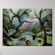 Poster scène de nuit d'arbre pleine lune peinture de soie