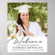 Célébrez votre diplômé et identifiez l'emplacement de la fête et accueillez les invités avec cette affiche moderne en noir et blanc avec une typographie manuscrite moderne de script BIENVENUE accentuée d'un faux bouchon de graduation en feuille d'or métallique et personnalisée avec votre texte personnalisé, le nom du diplômé, l'école et l'année de classe contre l'arrière - plan blanc. OPTIONS : L'échantillon est présenté dans une taille de 16x20" sur papier à valeur (Matte); d'autres tailles d'impression standard et personnalisées, qualité et cadrage du papier, fichier de téléchargement numérique instantané pour impression locale ou transfert de la conception à une planche en mousse, bannière, toile ou autres options de produit sont disponibles sur la page de commande. CONSEIL DE REdimensionnement : Choisissez Taille personnalisée pour les bordures paires en modifiant la hauteur et la largeur proportionnellement APRÈS avoir cliqué sur l'icône DÉVERROUILLER (ressemble à un lien de chaîne). ASSISTANCE : Pour obtenir de l'aide sur la modification ou la personnalisation de la conception, le changement de couleur, le redimensionnement ou le transfert de la conception, contactez le concepteur AVANT DE COMMANDER via l'onglet MESSAGE Conversation Zazzle ou envoyez un courriel à makeitaboutyoustore@gmail.com.