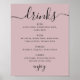 Poster Script rose pâle et poussiéreux mariage alcool bar