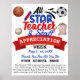 Poster mural du Merci Itinéraire All-Star PTO de la Semaine de la reconnaissance des enseignants. Dans les couleurs rouge, blanc et noir. Images de sports avec baseball, football et basket. Popcorn est l'un des snacks du salon de l'enseignant du groupe PTO ou PTA. Personnalisez ceci avec l'Appréciation, la date, merci, l'école, et l'information. Modifiez-le pour apporter d'autres modifications.