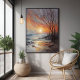 Cette superbe affiche générée par l'IA capture la beauté calme et éthérée d'un coucher de soleil hivernal. Le délicat mélange d'oranges douces et de violets muets crée un ciel fascinant tandis que le soleil se dissipe doucement sur un paysage gelé et calme. Avec ses arbres nus silhoués contre l'horizon et ses reflets qui dansent sur le sol gelé, cette pièce évoque une atmosphère paisible et réfléchie, parfaite pour toute chambre dans votre maison. Sa nature minimaliste mais soignée en fait un complément idéal à une décoration moderne, contemporaine ou à thème nature. Cette oeuvre offre une vision unique et moderne des paysages naturels traditionnels. Les textures subtiles et les tons cool font ressortir ce morceau, offrant une atmosphère élégante et sereine à tout espace. Idéal pour les amateurs de déco calme et apaisante, cet art mural est parfait pour les espaces de détente, les chambres ou les salles de méditation. Il est également un excellent cadeau pour les ménagères, les anniversaires ou toute personne qui aime l'art inspiré de la nature.