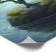 This whimsical poster features a frog balanced in a yoga pose on a mossy rock amid a misty forest pool, glowing waterfall backdrop and magical light-serene, fairytale nature scene.