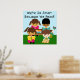 Plusieurs enfants avec des livres lus à une table, allongés sur le sol et assis sur le sol et un texte de style enfant dit "Nous sommes si intelligents parce que nous lisons !" sur un poster coloré et amusant de classe qui encourage la lecture, idéal pour les bibliothèques, les classes d'école, les chambres d'enfants !