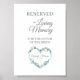 Conception romantique pour réserver le siège d'un être cher décédé dans la citation "Loved Memory" avec un cœur floral comportant les noms et la date de mariage.