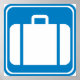 Signal routier et routier de style international indiquant l'emplacement d'une réclamation de bagages (ou d'une consigne de bagages) à proximité. Habituellement vu dans les aéroports, mais peut être vu sur vous!