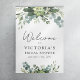 Accueillez les invités à la douche de mariage avec ce magnifique panneau d'eucalyptus facile à personnaliser avec le nom de la mariée et la date.