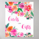 Cartes de douche nuptiales à script floral rose vif et signe de dessus de table avec joli tableau peint à la main rose audacieuse, fleurs rouge orangé et verdure. Parfait pour la fête de jardin de douche à thème boho automne. Avec une typographie de script moderne.