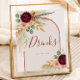 Élevez votre station de boissons avec ce panneau de table de Fête des mariées Fall in Love de Porch et Gable Design. Bouquet d'aquarelle de mamans bordeaux, roses roux, feuilles d'automne dorées, herbe de pampas séchée, végétation d'eucalyptus vert sauge, plumes de faisan rustique chic, encadrées par une arche en terre cuite boho moderne sur un arrière - plan blanc immaculé. Le texte est entièrement personnalisable pour inclure des noms de boisson, des recettes de cocktails ou des instructions pour les invités. Complète parfaitement les invitations assorties, les étiquettes de vin et d'autres décorations de table dans la suite Fall in Love.