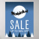 Faites plaisir à vos clients avec notre enseigne de vente de Noël captivante. Cette affiche époustouflante saisit la magie d'une nuit de Noël avec son ciel bleu profond et son traîneau à Père Noël qui s'envole gracieusement à travers le ciel illuminé par la lune. Le mot "VENTE" occupe le devant de la scène, avec le montant de remise facilement modifiable pour convenir à votre promotion en utilisant la fonction Personnaliser, que ce soit 10%, 20%, 50%, ou même 70% de réduction!