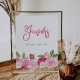 Conçu pour coordonner avec notre collection de douche nuptiale du Jardin Rose, ce panneau de table de faveur comporte des lettres manuscrites roses avec des fleurs colorées en bleu, magenta et ivoire aux coins. "Favoris ; prenez-en un" apparaît en lettres roses et en ardoises. Choisissez l'impression professionnelle ou l'option Téléchargement instantané pour imprimer localement ou à la maison.