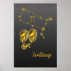 Signe astrologique des Gémeaux en rendu 3D, avec constellation. Conception entièrement dorée.