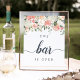 Les clients Invitations peuvent profiter d'une libation préférée du bar avec notre charmant panneau de bar à mariages fleuris. L'affiche 11x14 présente une bordure supérieure de fleurs pastel aquarelle et feuillage, avec "le bar est ouvert" en script de calligraphie et en lettres de bloc. Conçu pour correspondre à notre collection de mariages floraux de mi-été.