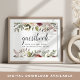 Conçu pour correspondre à notre collection de mariages Rustic Bloom, cet élégant panneau botanique invitations invités mariages pour signer votre livre d'or. Personnalisez avec deux lignes de texte personnalisé dans le script de calligraphie et le lettrage serif traditionnel (montré avec "Guestbook; veuillez laisser vos souhaits pour le nouveau Mr et Mme. [nom]"), encadré de fleurs d'automne et de verdure.