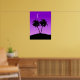 Imprimer avec une silhouette noire de palmiers, contre un arrière - plan à gradient de violet crépusculaire, sous un croissant de lune mince