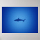 silhouette de requin floue contre un arrière - plan d'eau bleu avec un éclat bleu clair