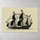 Poster Silhouette du navire avec voiles de billage
