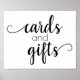 Douche horizontale simple en noir et blanc "Cartes & Cadeaux", signalétique de fête ou de table d'accueil avec un script décontracté et amusant. Le design classique comprend une superposition de la typographie de citation à la main moderne. La belle police avec une couleur arrière - plan personnalisable permet de s'adapter facilement à n'importe quel thème. Pour d'autres couleurs ou produits correspondants, veuillez visiter le magasin JustFharryn Zazzle, ou contacter le concepteur, c/o fharryn@yahoo.com Tous droits réservés. #zazzlemade