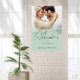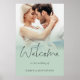 Disponible en version imprimée ou en téléchargement numérique imprimable. Simple superposition photo Script moderne Bienvenue à Mariage Sage Green. Style minimaliste moderne pour accueillir vos invités dans un doux vert pastel. Remplacez simplement l'exemple de photo par le vôtre qui se trouve derrière un calque teinté gradué où le texte est partiellement recouvert dessus. Bienvenue est dans un script stylé et le reste du texte que vous pouvez facilement personnaliser.
