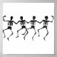 Quatre squelettes dansent. Parfait pour vos soirées d'Halloween.
