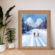 This hand-painted watercolor design is inspired by the quiet companionship of two people gliding along a wide, snowy ski trail, surrounded by a tranquil winter forest. Soft pines gather in gentle silence as powdery snow settles around them, and the trail stretches forward like a peaceful invitation. Each brushstroke captures the stillness, warmth, and shared wonder of a winter day wrapped in white.