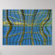 Cette affiche présente un design géométrique abstrait d'un puits de lumière tel que vu du rez-de-chaussée d'un atrium de 9 étages ci-dessous. Les lignes ondulée d'or et de noir convergent toutes vers une ligne horizontale verte au centre. Un ciel bleu turquoise profond est visible au-delà du verre. Accrochez-le sur votre mur ou votre plafond. C'est un excellent accent de chambre et va générer beaucoup de commentaires.