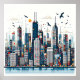 Une image abstraite d'un écosystème urbain. Principalement blanc et bleu clair