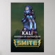 Parler de Kali, c'est parler du début du temps lui-même. Sur les terres majestueuses de l'Hindustan rose une armée de démons qui ont conquis la campagne et massacré le peuple. Pourtant, lorsque les dieux eux-mêmes ont été vaincus, Devi, la déesse suprême, a émergé pour renvoyer cet hôte et protéger les fidèles. Trois formes qu'elle a prises pendant ces temps anciens. La première, Durga, la Mère de la Création, était aussi radieuse qu'elle était effrayante. Astride son tigre, elle dispersa la horde du démon jusqu'à ce qu'elle rencontre l'horrible Raktabija. Pour chaque blessure, elle a donné le démon, son sang maudit en a créé une copie, ce qui a rapidement donné lieu à une armée inarrêtable de clones de Raktabija. Rage bouillait aux coins de l’esprit de Durga, dans la quête d’abattre et de détruire le mal. Du front de Durga s'est répandu sa forme furieuse, avec la peau foncée et les yeux brillants d'un rouge menaçant. Ainsi était Kali, le Noir, déesse du Temps et de la Destruction, la deuxième forme de Devi né. Kali a sorti sa langue et a pris chaque dernière goutte de sang de Raktabija, chaque clone l'a avalé dans sa bouche. Elle grinça et s'enchaîna de joie meurtrière tandis que le monstre se bousculait pour s'échapper. Alors qu’à dernier le démon avait été totalement consumé, Kali a éclaté dans sa danse de la victoire, piétinant négligemment les cadavres des victimes de Raktabija. Kali était tellement absorbée dans sa danse sanglante, qu'elle n'a pas remarqué son mari miséricordieux, Shiva, qui s'occupait avec compassion des blessés, et l'a piétiné à pied. Alarmé, il cria. Honte, Kali a arrêté de danser. Ensemble, Shiva et Kali représentent la coexistence de la miséricorde et de la justice comme attributs du Divin. Rarement Kali n’a été vu depuis, gardé dans l’ombre de Devi, mais quand les marées du changement de bataille et du mal s’annoncent grandes, il n’y a pas de solution, mais une destruction incontrôlée du mal, et Kali, une fois de plus, marche sur la Terre.