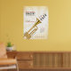 Customisez cette affiche publicitaire de trompette/événement musical avec vos infos. Des notes musicales subtiles et des touches piano/clavier sont présentées dans l'arrière - plan