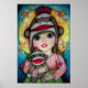 Adorable grand oeil fille art avec un singe à chaussettes coloré