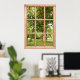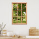 Soleil et ombre au milieu des arbres dans le parc Cette affiche qui ressemble à une fenêtre donne sur une scène verte apaisante. Les arbres feuillus offrent de l'ombre du soleil d'été et pompent l'herbe avec la lumière du soleil et l'ombre. Une vue reposante sur laquelle on peut regarder, encadrée par une fenêtre en bois.