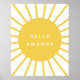 Simple, élégant et mignon "Bonjour<name>" affiche personnalisée avec un design graphique de soleil en jaune moutarde de style scandinave 'scandi' amusant et une typographie moderne en blanc que vous pouvez facilement personnaliser avec vos propres mots, phrase et nom. Un cadeau personnalisé parfait pour un être cher !