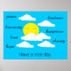 Le soleil souriant est de retour avec plus de nuages. Cette affiche égayera votre journée. Il vous rappellera aussi certaines des choses importantes de la vie. Travail original; c) Sharon Lee Hudson. Tous droits réservés.