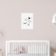 Une sorcière volant sur un balai avec des silhouettes de chauve-souris autour d'elle. Elle porte un casquette sorcier classique, une robe fleurie et des chaussures noires à talon haut. Le design minimaliste apporte une touche design et contemporaine à votre décor de saison éffrayante.