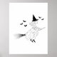 Poster Sorcière et chauves-souris simple ligne Art minima