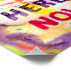 Vous perdez-vous souvent dans le passé et dans l'avenir ? Avez-vous besoin d'un rappel pour être ici, en ce moment ? Cette affiche peut faire exactement cela- en attirant votre oeil avec ses couleurs vives, elle peut vous rappeler chaque fois que vous passez devant pour prendre un souffle et vous ramener dans ce moment, ici dans le présent. Parce qu'ici et maintenant, c'est là que se trouve toute l'action et la puissance réelles !