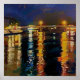 A vibrant night scene with city lights reflecting beautifully on a river. The luminous reflections create a stunning play of colors against the dark sky.