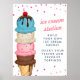 Station de crème glacée estivale Mariage moderne Enseigne en acrylique à poser sur une table avec un cône de crème glacée estival aquarelle rempli de boules de crème glacée colorées et sucrées sur fond blanc. Conçu pour vous par Evco Studio www.zazzle.com/store/evcostudio