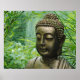 Poster Statue de Bouddha paisible dans une forêt verte ve