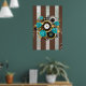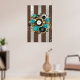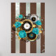 Poster Steampunk Clock and Turquoise Roses on Striped