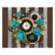 Poster Steampunk Clock and Turquoise Roses on Striped