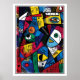 L'illustration de style cubiste, spectaculaire et audacieuse, présente des lignes audacieuses, des couleurs vives, des formes géométriques et des traits faciaux intrigants, vus sous différents angles. Grande oeuvre pour un bureau, dortoir ou n'importe où vous aimeriez des couleurs audacieuses et de l'art abstrait expressif.