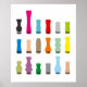 Trois rangées de six pointes de goutte colorées de différents modèles. Nos pièces de bouche bien-aimées dans un style pop art qui met en valeur leur beauté et attise toutes les vapeurs.
