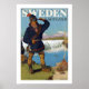 Poster Vintage voyage pour la Suède, promotion des aventures en plein air à Lappland.