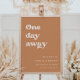 Un jour plus loin : signe de bienvenue pour le dîner de répétition. Un thème rétro chic : adoptez ce design typographique vintage et élégant pour votre papeterie mariage, avec un thème de couleur sucre brun. Facile à mélanger avec notre papeterie similaire disponible en orange brûlé, terre cuite et rose pêche. Couleurs et arrière - plans de texte entièrement personnalisables.