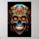 Sugar Skull image in blue and copper, with a black background, wall poster. You can edit the background and alter the colors of the image to make it your own.