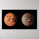 Cette impression artistique de super-Terre 55 Cancri e montre une surface chaude partiellement fondue de la planète avant et après une éventuelle activité volcanique au jour.