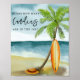 Bébé à bord ! Baby shower invitation - parfait pour un baby shower d'été. Plage à thème. Watercolor design a une scène océan et plage avec surf, palmier et casquette d'été.